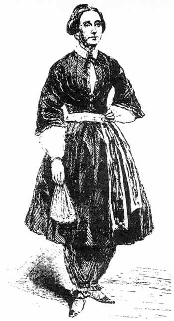 The new costume, most frequently called the "reform dress" by its advocates, appeared on the American reform scene in the late 1810s. After Amelia Bloomer's journal, The Lily, published a woodcut of Bloomer wearing the costume in March, 1851, it came to be known as the "Bloomer" dress despite the protestations of Bloomer and other dress reformers that she was in no way responsible for its design. The costume was modeled after the dress of Moslem women and was sometimes called the "Turkish costume." While there were several variations, they all consisted of a loose fitting dress reaching to the knees or lower and, most controversial of all, a pair of trousers.3